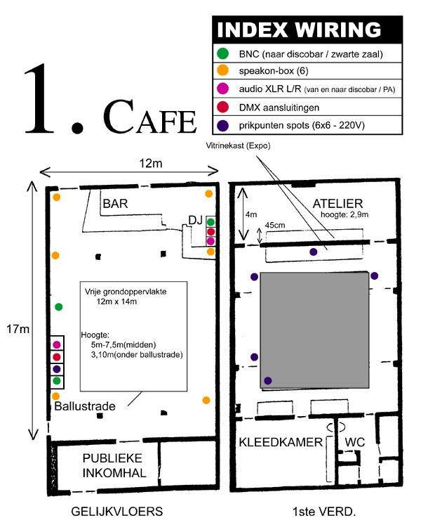 1 -caféruimte- is ingericht als 'centraal'