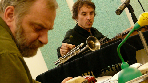 Percussionist en klankkunstenaar Kris Vanderstraeten (kc BELGIE, 2007) is sinds de jaren zeventig actief binnen de geïmproviseerde muziek. Op een uiterst intuïtieve manier exploreert hij zijn fascinatie voor avontuurlijke percussieve en concrete klank. Zo is zijn zelfontworpen miniatuur drumstel een fascinerend kunstwerk op zich en houdt hij er een onnavolgbare speelwijze op na. Samen met Jean-Michel Vanschouwburg en Jean Demey vormt hij ook het trio Sureau. De samenwerking tussen Vanderstraeten en van Luijk ontstond midden jaren negentig met regelmatige homesessies die resulteerden in de albums High Noon (2005) en Costa Del Luna (2007) verschenen op van Luijks La Scie Dorée-label. Hun werk situeert zich binnen de verfijnde abstracte klankimprovisatie, zowel akoestisch, elektrisch als elektronisch.