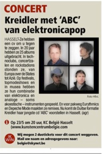 KREIDLER + OUBYS 23 mei 2014 link: http://www.kunstencentrumbelgie.com/programma/concert/tuxedomoon2.htm