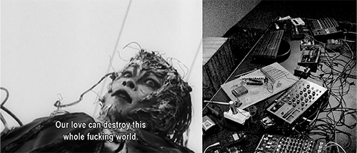 Following the D.I.Y aesthetic of Tetsuo: The Iron Man, Volders uses an arsenal of scavenged and home built instruments and machines to enhance the dark yet ludicrous atmosphere of the movie, often emerging into a high intensity trip down future trash worlds.