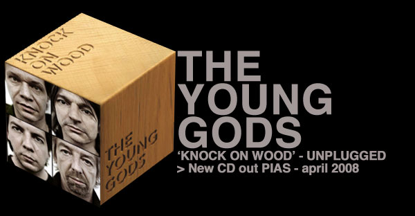 In november 2006 speelde The Young Gods voor het eerst een volledig akoestische set tijdens de voorstelling van het -inmiddels uitverkochte- boek ‘Truce Diaries - The Young Gods’. De gekende nummers kregen een psychedelische folkblues-behandeling mee en klonken verrassend anders, maar nog steeds overduidelijk Young Gods. De combinatie van de akoestische Young Gods-songs met opmerkelijke covers van Suicide ‘Ghost rider’, Radiohead ‘Everything in its Right Place’ en Jimi Hendrix ‘If Six was Nine’ genereerde bij de bandleden en het aanwezige publiek een onverklaarbare energie. Hoewel gekend als pioniers van de elektronische (pop- en rock)muziek, leek de stap om akoestische versies van hun beste songs op te nemen een logische en waardevolle beslissing en daar zijn wij niet rouwig om. Het ijzersterke resultaat heet ‘Knock On Wood’, zag het levenslicht in april 2008 via PIAS en wordt op 11 oktober live voorgesteld door de drie-eenheid Treichler, Monod, Tronti aangevuld met gelegenheidsgitarist Vincent Haenni