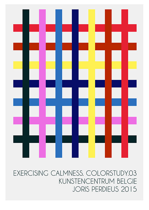 Recent voerde Joris een aantal studies uit waarvan de resultaten te zien waren in Utrecht (Colorstudy.02) en Hoensbroek (Colorstudy.01).In Kunstencentrum BELGIE laat Perdieus voor Colorstudy.03 zijn recente ontwikkeling opnieuw los op een dialoog met de tentoonstellingsruimte.