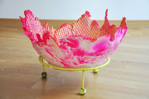 "Tamara Van Sans beelden geven nooit de indruk definitief of ‘totaal’ te zijn. Ze lijken altijd op het punt te staan te gaan groeien of te bewegen, te krimpen of te zwellen, een aanhangsel te zullen verliezen of er juist een puist bij te krijgen. Haar sculpturen kunnen we bijgevolg door en door anti-klassiek noemen. De klassieke vorm wordt immers gekenmerkt door een eenheid en zuiverheid die geen enkele toevoeging of weglating verdraagt, en ze ambieert de eeuwigheid. In het klassieke schoonheidsideaal zijn het schone, het goede en het ware, binnen het krachtige raster van de geometrie, onlosmakelijk met elkaar verbonden. De erupties van vormen, kleuren, materialen en texturen in de kunst van Tamara Van San situeren zich daar tegenover als een buitengewoon krachtig en radicaal alternatief. De creatie van nieuwe vormen is nooit onschuldig." (Frank Maes - hoofdcurator van het S.M.A.K.)