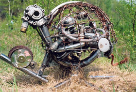 bizarre mobielen en attributen uit afvalmaterialen. Ze knutselen