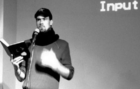 Host 'Jee Kast'. Het literaire geweld wordt muzikaal gelardeerd