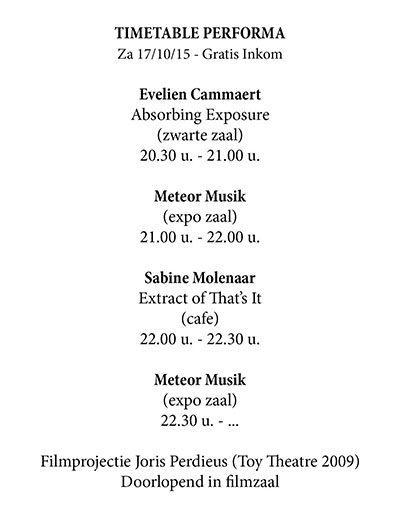 Verschillende performances om en rond het werk van Joris Perdieus SABINE MOLENAAR / METEOR MUSIK / EVELIEN CAMMAERT