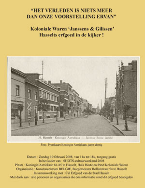 Kunstencentrum BELGIE nodigt u en uw vrienden, kennissen en familie bij deze van harte uit op een bijzondere opendeurdag rond het verleden van de firma 'Koloniale Waren Janssens & Gilissen' uit Hasselt. Dit op zondag 10