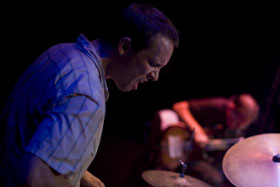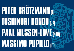 De legendarische status van dat concert doet ons nu reikhalzend uitkijken naar het gloednieuwe kwartet dat naast Brötzmann en Kondo ook percussionist Paal Nilssen-Love en bassist Massimo ‘Zu’ Pupillo in de rangen telt. Nilssen-Love en Pupillo lieten in december 2007 op het BELGIE podium al een explosieve ritmische storm op ons los tijdens een OffonOff-concert. Beide heren -Nilssen-Love in 2006 en Pupillo in 2008- delen ook de unieke improvervaring van het Open Circuit:iNTERaCT-festival. De opvallende veelzijdigheid van beide muzikanten bevestigt alvast dat Brötzmann en Kondo een geschikte keuze hebben gemaakt om dit gloednieuw kwartet vlot te trekken, te situeren ergens tussen Last Exit en Die Like a Dog !