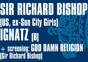 Sir Richard Bishop (ex-Sun City Girls) en Ignatz speelden eerder al memorabele sets op het BELGIE-podium tijdens het kraak-festival in 2006. Elk op hun eigenzinnige manier, verwerkten ze invloeden als blues, folk, raga, flamenco en psychedelica tot een beklijvend nieuw geheel. Sir Richard Bishop haalt nu opnieuw de akoestische gitaar van stal voor een streep eclectisch instrumentaal genot en laat ons verder kennismaken met zijn donkere elektronische en filmische kant via God Damn Religion, een beeldentrip zonder weerga. Ignatz liet zopas Ignatz III (kraak) op ons los en daar zijn wij en de internationale pers niet rouwig om. Tijd voor een hernieuwde kennismaking met deze Belgische bluestroubadour.