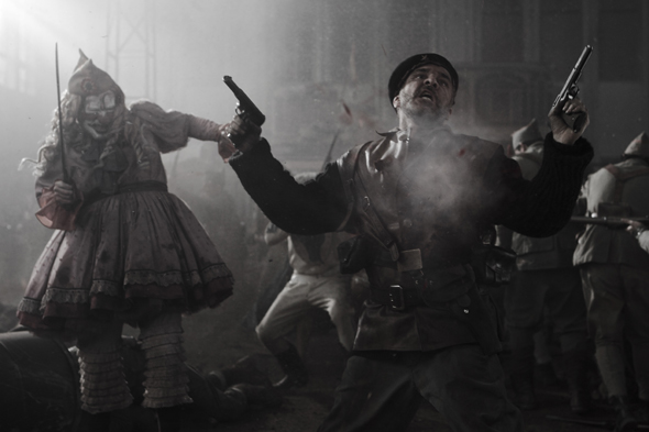 Na ‘The Oxford Murders’ uit 2008 keert regisseur Álex de la Iglesia terug naar het grote scherm met het romantische en over-the-top gewelddadige melodrama ‘Balada Triste de Trompeta’. Hij mixt, volledig in het verlengde van voorgangers als 'Acción mutante' en 'El Día de la Bestia' (kc BELGIE, 1996), elementen van Tarantino, Hitchcock, Fellini en Todd Browning om te eindigen met een van de beste films van de afgelopen jaren. Dit is groots bedoelde cinema, vol spektakel, emoties en bizarre plots. Pure lef, de manier waarop hij met een rotvaart en excentriciteit de sferische arthousecinema een trap verkoopt. Hoewel niet geschikt voor mensen met een zwakke maag, een knap staaltje avontuur van een van de meest getalenteerde hedendaagse regisseurs. Álex de la Iglesia nestelt zich met ‘Balada Triste’ zonder twijfel in het rijtje briljante Spaanstalige regisseurs als Guillermo del Toro (Hellboy...), Alejandro González Iñárritu (21 Grams, Biutiful...) en Robert Rodriguez (El Mariachi, Machete...).