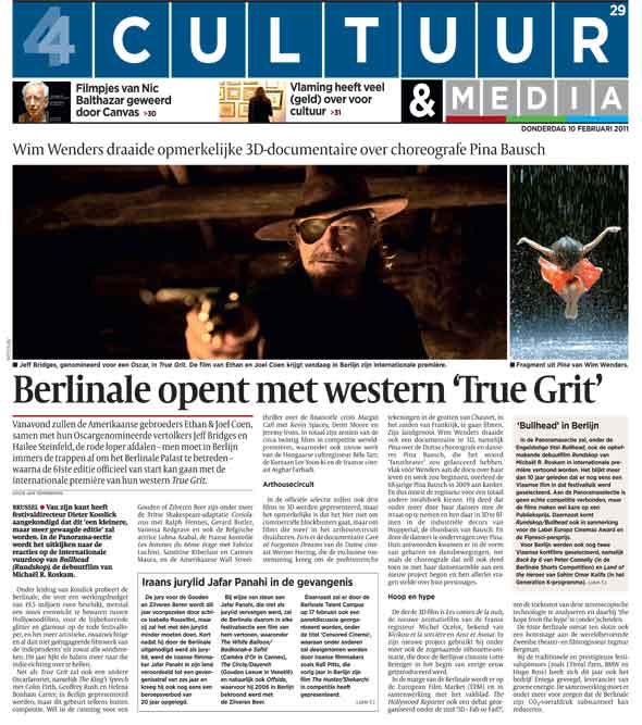 Lees HIER het interview met Jef Bridges in DE MORGEN (zaterdag 12/02/2011)
