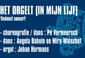 De choreografe zoekt  met haar danswerk naar transcendentie en overgave, niet op zeemzoete wijze, maar met durf voor complexiteit : zowel dramatisch als speels en licht. Binnen het kader van dit orgelconcert brengt Pé Vermeersch een  gedurfde vernieuwing voor de klassieke orgelliefhebber, maar nodigt ook de dansliefhebber uit om via de dans het orgel beter te leren kennen. De muziek wordt verzorgd door Johan Hermans, kathedraalorganist in Hasselt. Hij brengt een gevarieerd programma met werken van o.a. P. Glass, J.S. Bach, H.A. Stamm en P. Planyavski.