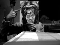 De aap staat in deze happening dus model voor ons eigen
