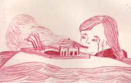 De Française Céline Hudréaux maakt naïef aandoende etsen die een wereld vol natuurcatastrofen en noodlot tekenen. Verwacht echter geen apocalyptisch geweld, maar fragiele en intimistische understatements met een vlijmscherp randje eraan.