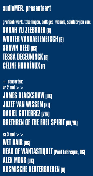 De gitzwarte pentekeningen van Wouter Vanhaelemeesch sieren het maandelijkse tijdschrift voor avontuurlijke muziek ‘Ruis’ en krijgen verder een bredere erkening als illustraties van audioMER-releases. Naast zijn pentekeningen maakt hij voor deze gelegenheid een selectie uit een reeks video’s die hij samen met collegakunstenaar Wouter Van De Voorde maakte.