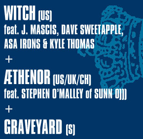 J. Mascis van Dinosaur Jr. en Stephen O’Malley van Sunn O))) (kc BELGIE, 2005) bestijgen het BELGIE-podium met hun respectievelijke bands ‘Witch’ en ‘Æthenor’. Beide heren lieten ons weten dat het hier niet gaat om vluchtige zijprojecten. ‘Witch’ en ‘Æthenor’ zijn volwaardige bands met een sterke eigenheid waarin ze hun muzikale queeste resoluut kunnen verder zetten. We voegen daar, enkel om u te plezieren, de eerste hoofdknik van de avond aan toe met de nieuwe lichting Zweedse psychrock van Graveyard !