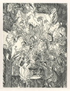 - Fabrice Soevereyns; bloemstilleven, grafiet op simili japon